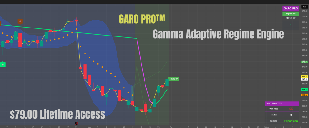 GARO PRO™ (GammaBulldog Advanced Regime Overlay) is a premium market-structure engine that gives traders a clean, real-time view of trend conditions, volatility regimes, gamma dynamics, and liquidity behavior—all in one unified overlay.