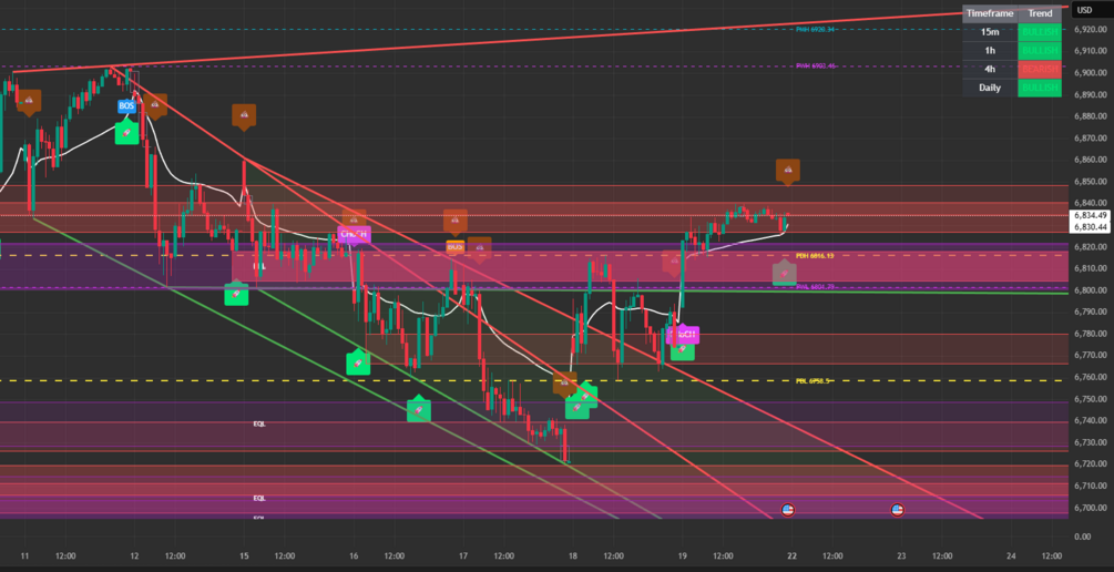 Structure Pro™ Liquidity sniper mode with "Clean" automatic trend lines selected in SETTINGS- 15 minute with labels. PDH/L and Liquidity